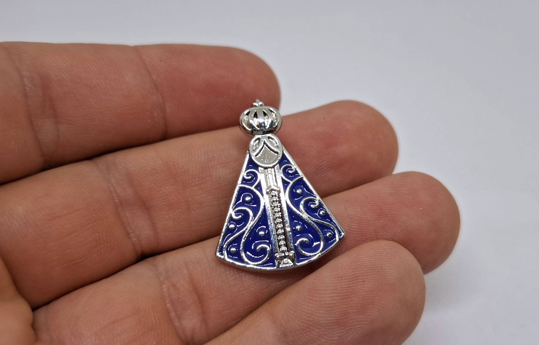 Pin, Boton, Broche – Nossa Senhora Aparecida Azul e Prata