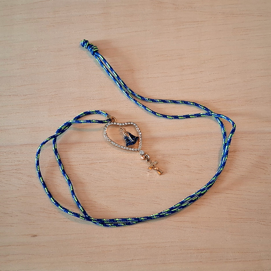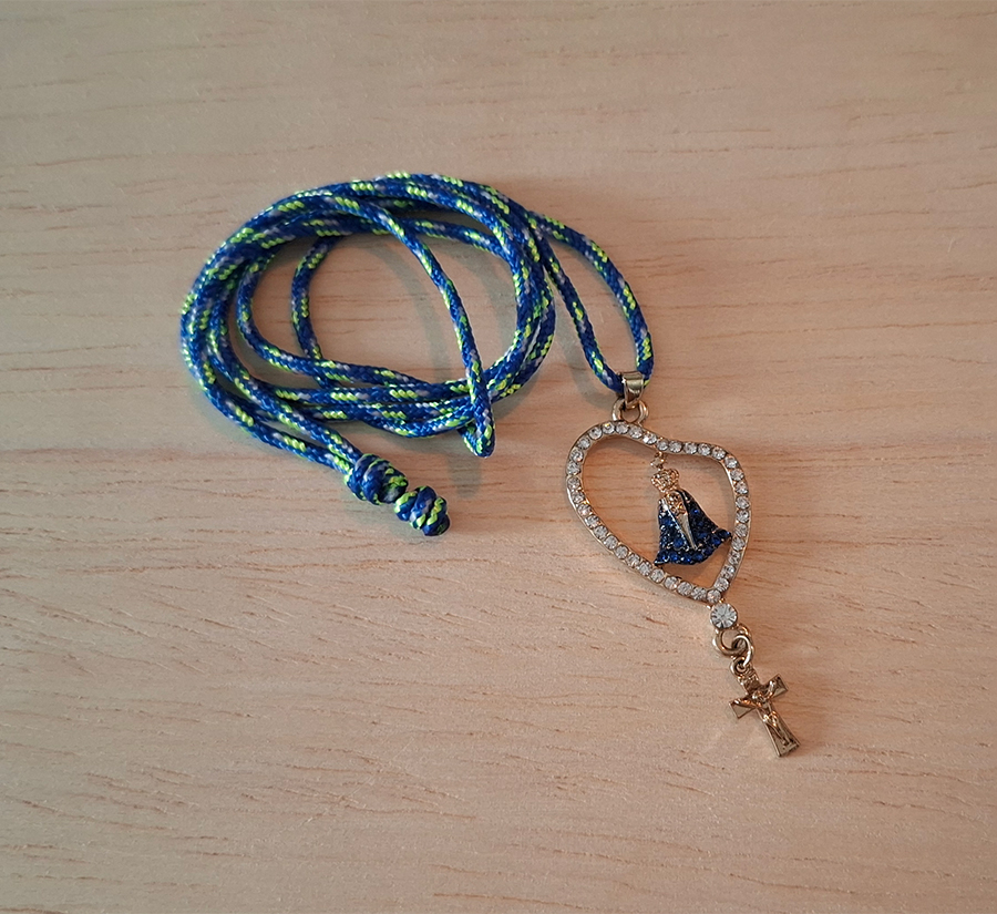 Com acabamento artesanal e um pingente de Nossa senhora aparecida em Aço Inox e gravação a Laser, este cordão não é apenas um acessório, mas um companheiro de fé, proteção e confiança para o dia a dia ou peregrinações.