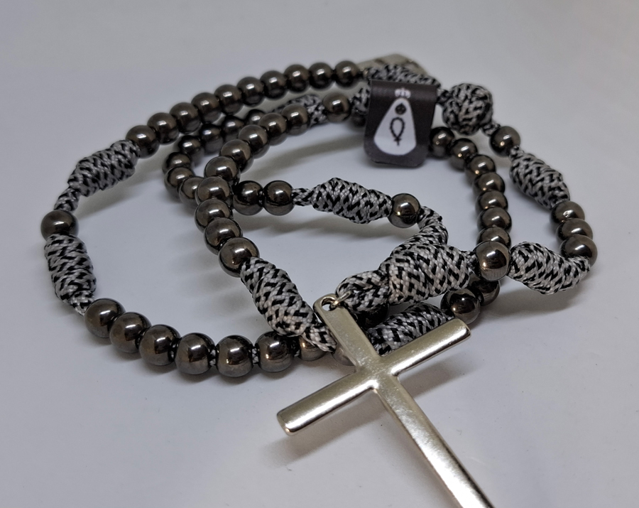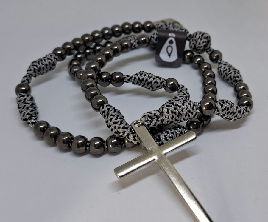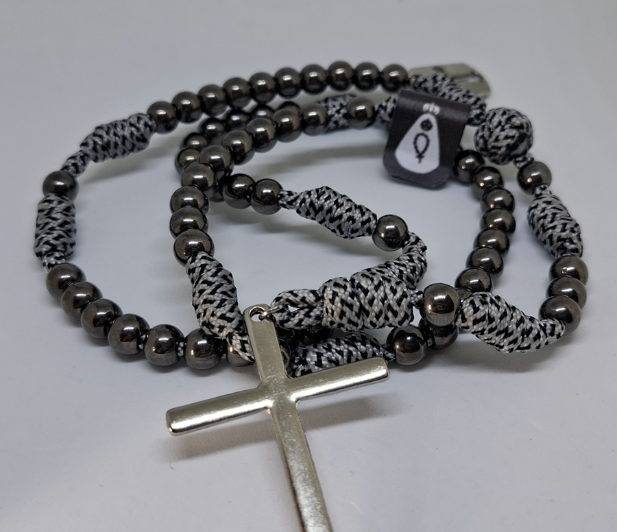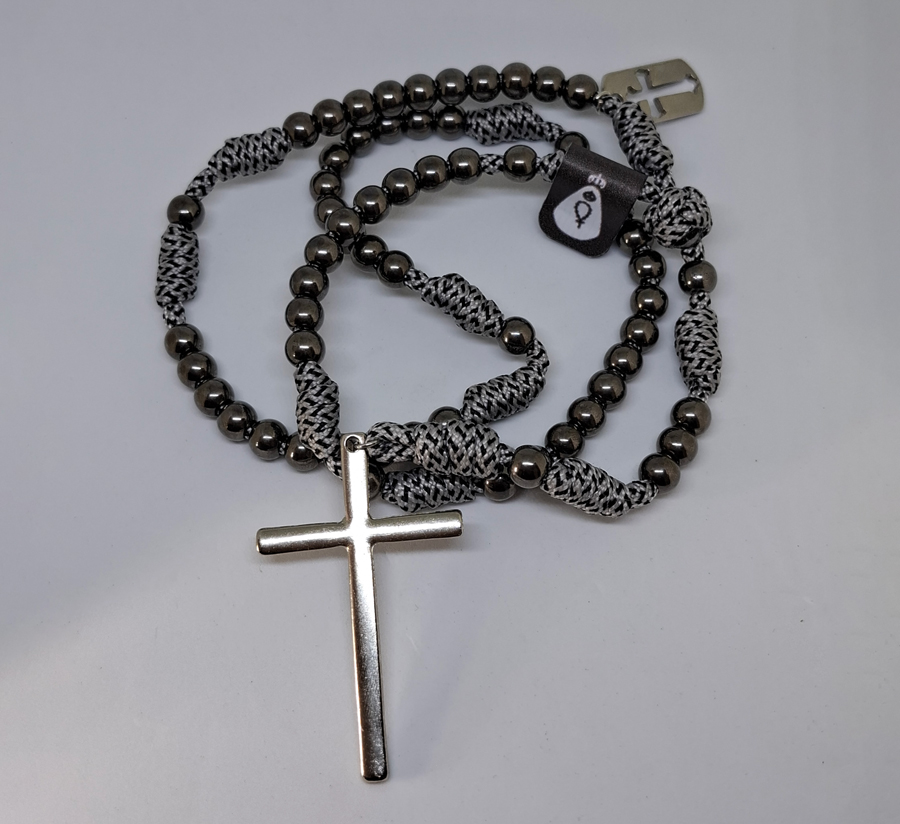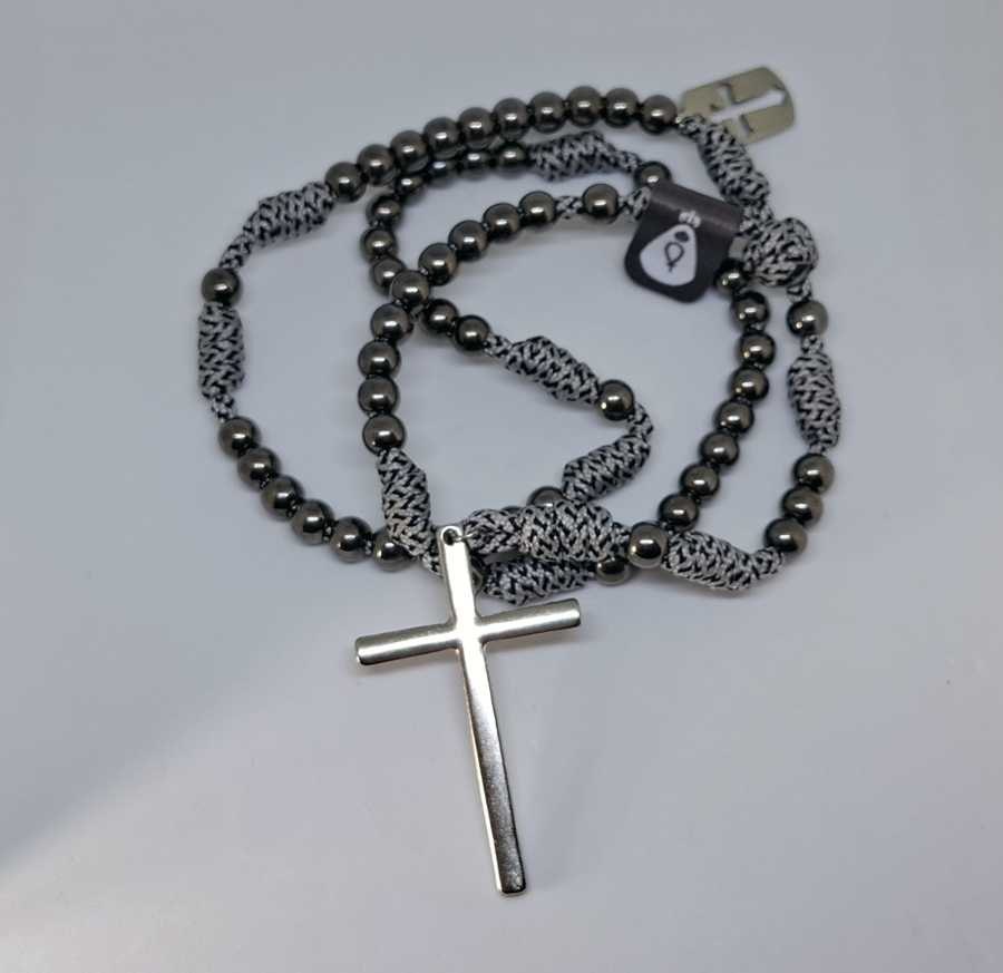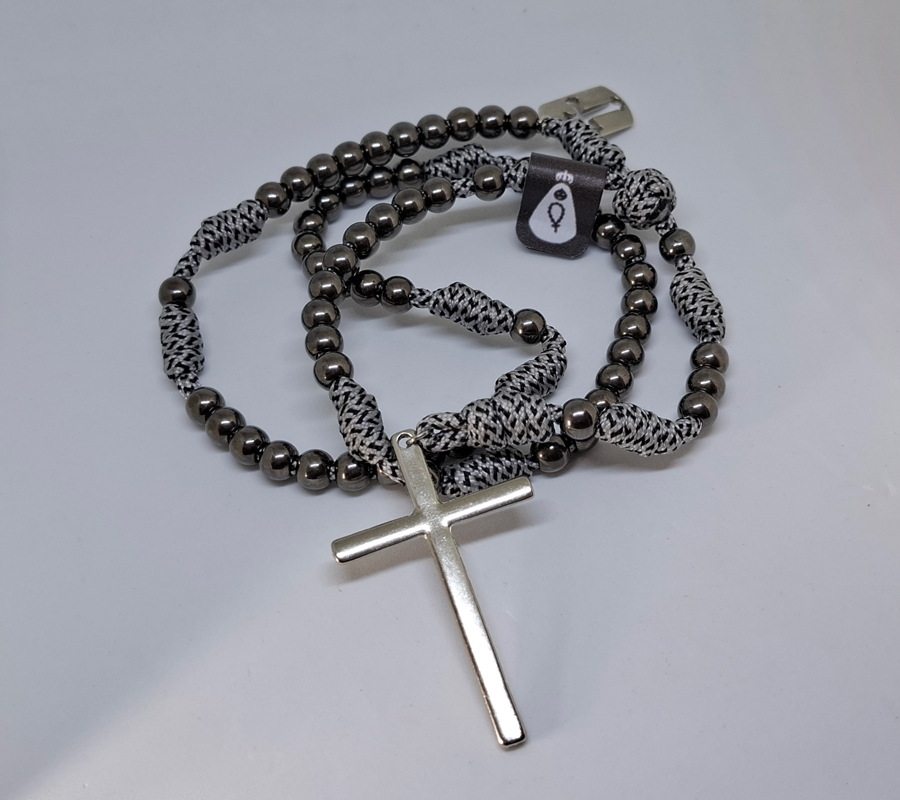 Terço em Paracord – Minimalista – Cinza/Prata