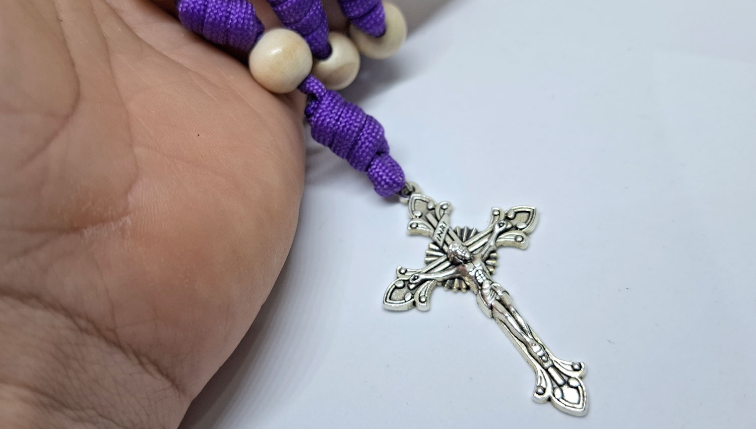 Terço em Paracord – Quaresima – Roxo/Branco