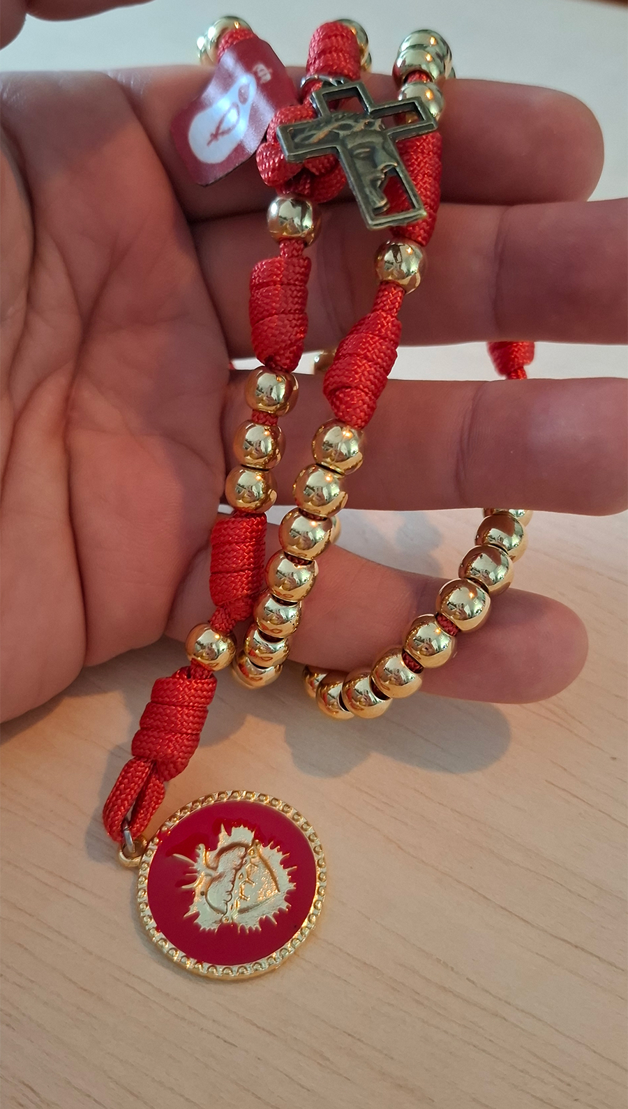 Este terço não é apenas um objeto de devoção, mas também um símbolo de proteção e firmeza, feito para durar e estar ao seu lado em todos os momentos da sua caminhada espiritual.